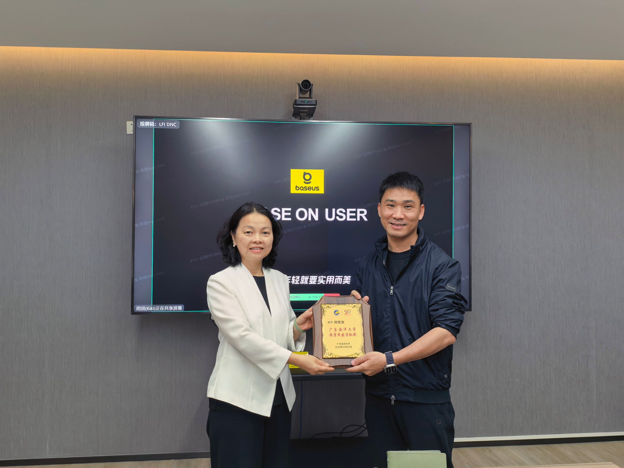 走访期间,谭平代表学校向何世友校友致以诚挚感谢,并现场为其颁发“广东海洋大学教育突出贡献奖”牌匾,感谢他在学校 90 周年校庆之际慷慨捐资、助力母校建设发展的爱心善举。谭平指出,90 周年校庆是学校发展历程中的重要节点,广大校友的鼎力支持是学校推进高水平海洋大学建设的坚实力量。何世友校友心系母校、反哺桑梓的行为,充分彰显了海大校友的责任担当与赤子情怀,为全体校友树立了榜样。她还向校友介绍了学校近年来在学科建设、人才培养、科研创新等方面的发展成果,希望双方以此次交流为契机,进一步拓宽合作领域、深化合作内涵,实现校企资源共享、优势互补、协同发展。