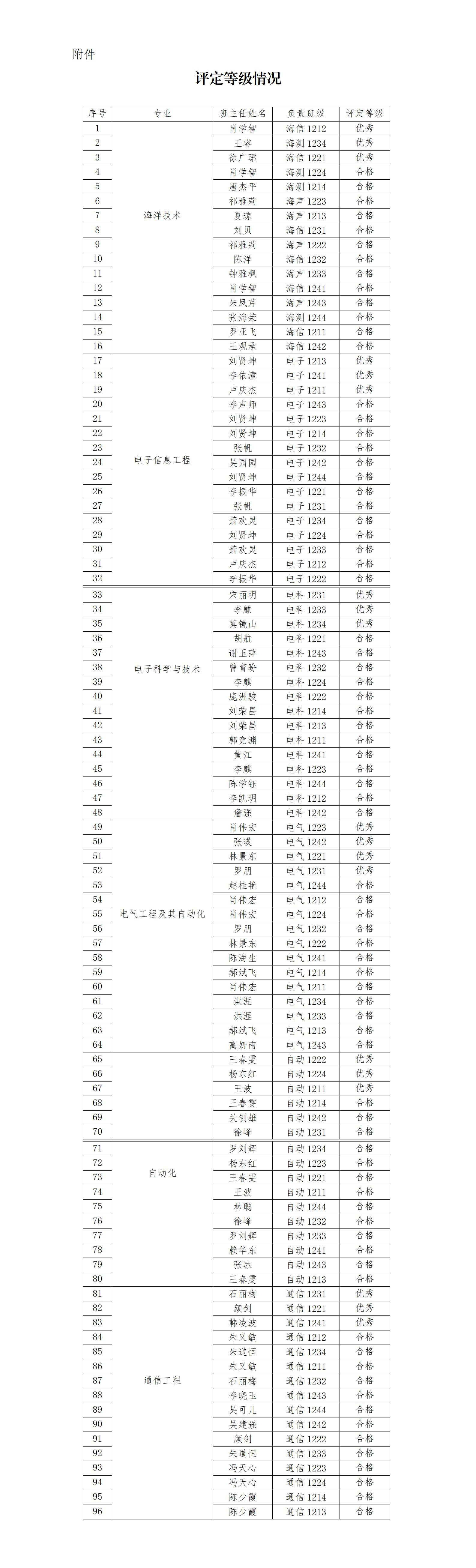 根据《广东海洋大学本科生班主任工作实施细则》文件要求,我院对2024-2025学年第二学期班主任工作进行了考评。我院共96个自然班,按不超过20%的比例,学校下发19个优秀班主任名额。为鼓励各系老师,我院以专业为单位将优秀班主任名额进行分配,每专业均为16个自然班,优秀名额各3个,剩余1个优秀名额,按班主任综合得分排名确定。