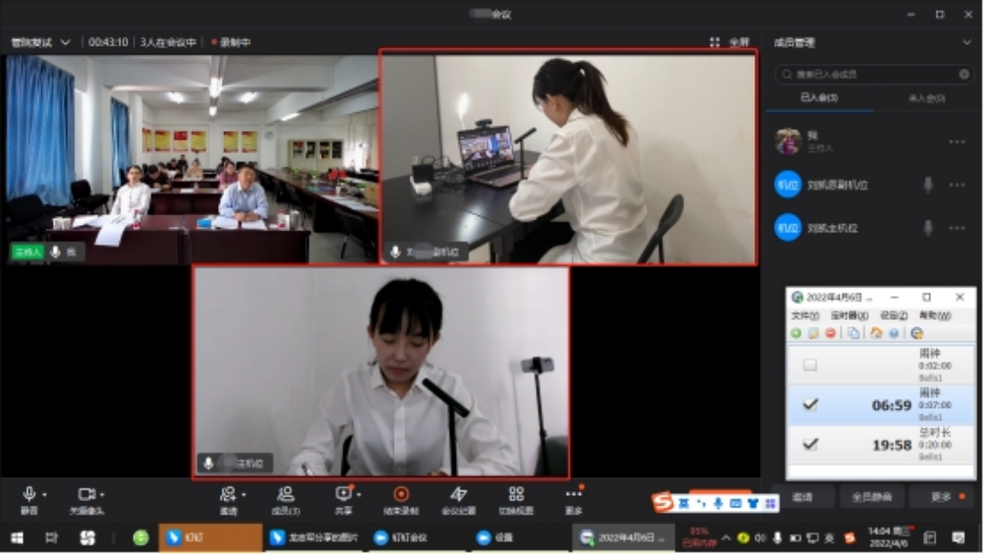 (1)复试形式:通过腾讯会议复试,复试前发给考生会议号。考试采用“双机位”方式。需准备具有摄像头的2个联网视频设备(1台电脑+1部手机或2部手机),请考生用两个设备分别登录腾讯会议(需两个账号),并确保设备电量充足。