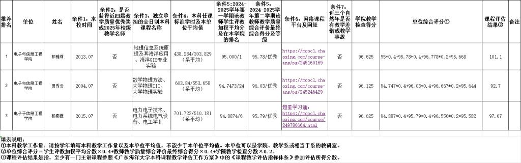公示时间为2025年11月13日~17。公示期内如有异议,请与学院教学办公室联系(联系人:庄老师,联系电话:2383821,电子邮箱:13553524192@139.com)